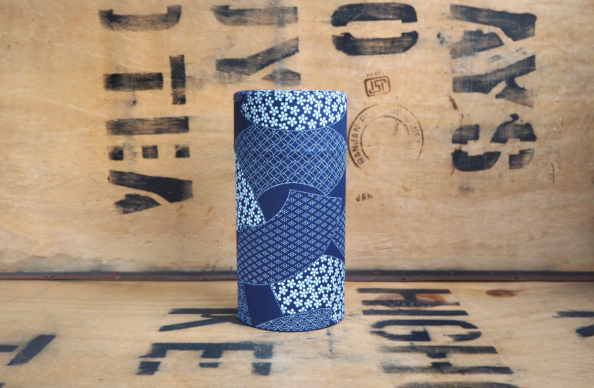 A stylish round caddy in which to store your tea, complete with an inner lid, keeping your leaves super fresh, wrapped in washi paper giving a distinct look and tactile feel.