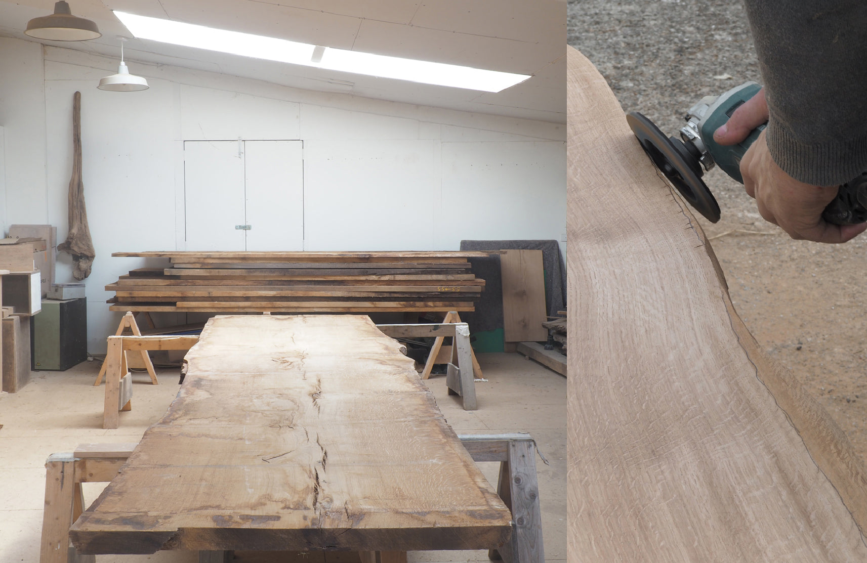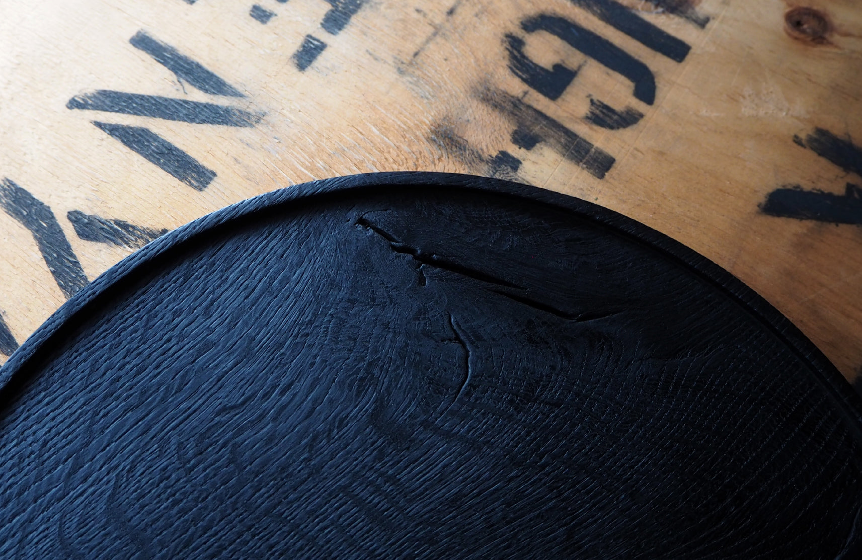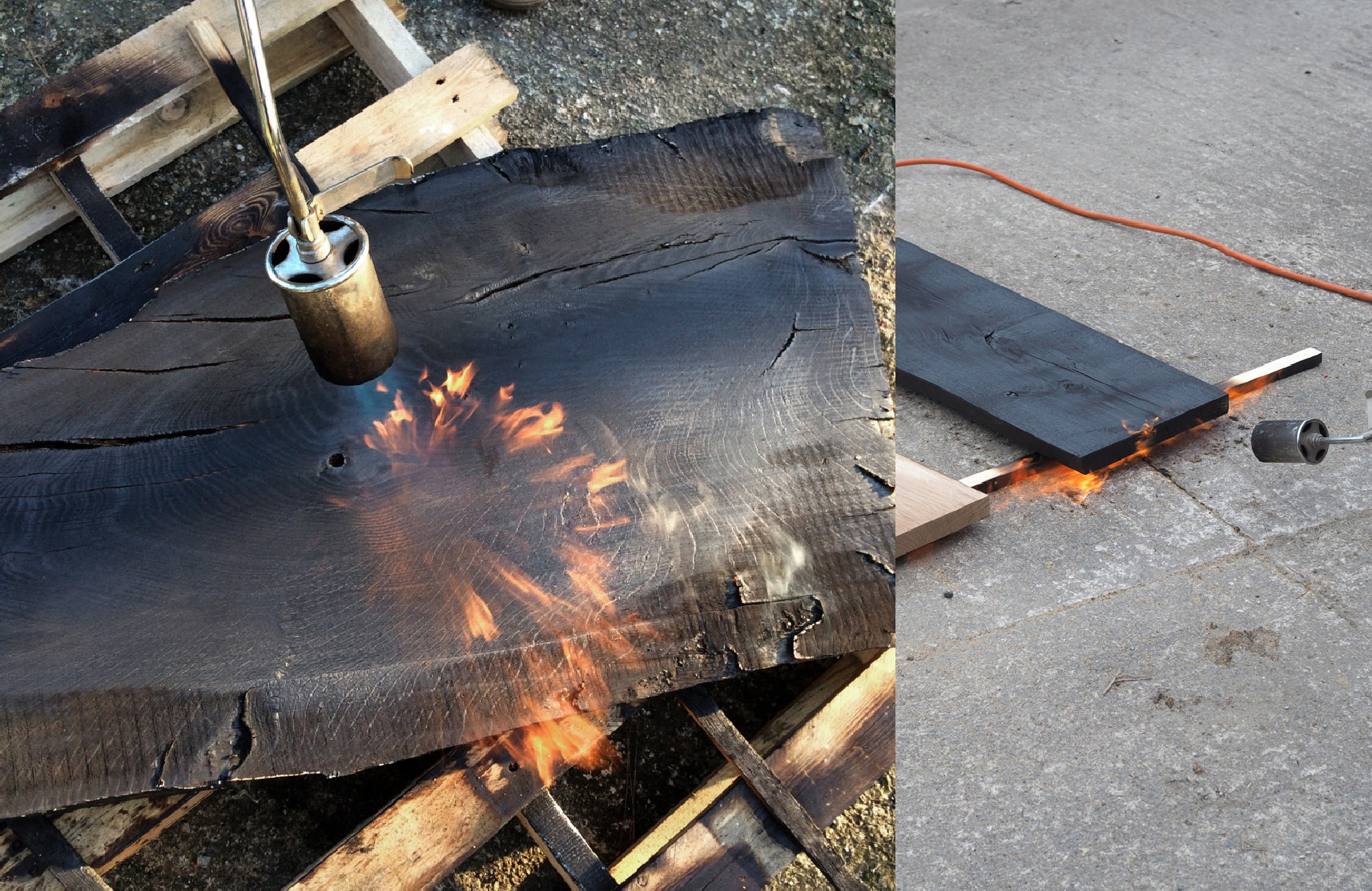 The Japanese technique called Yakisugi or Shou sugi ban in the west has been applied to char the oak, burning emphasises the wood’s unique knots, splits and markings whilst highlighting the beautiful flow of grain. The controlled burning technique also fortifies and protects the wood further from damage.