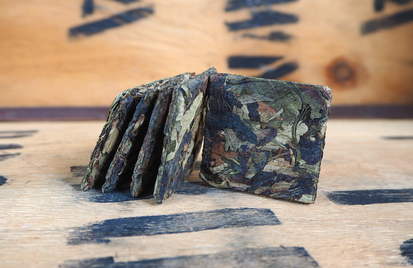A rarity of special leaves and pressed process usually reserved for againg whites & puerh. Each square is 5g of pressed dancong tea; 'Dancong' meaning Single Bush, traceable back to a single bush/tree of group of bushes/trees.