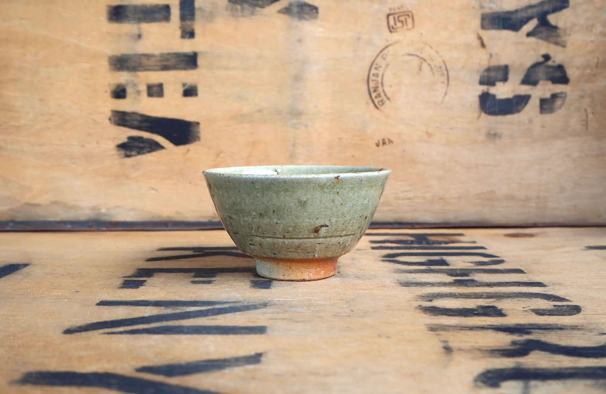 A delicate wood fired stoneware Tea Bowl with a classic form. Glazed with a greenish celadon giving a natural feel and tone that contrasts nicely with the gently toasted raw clay of the foot. The surface is full of complex granite inclusions creating an interesting natural speckling, with a soft shine and smooth feel making it a comfort to hold and a joy to use.